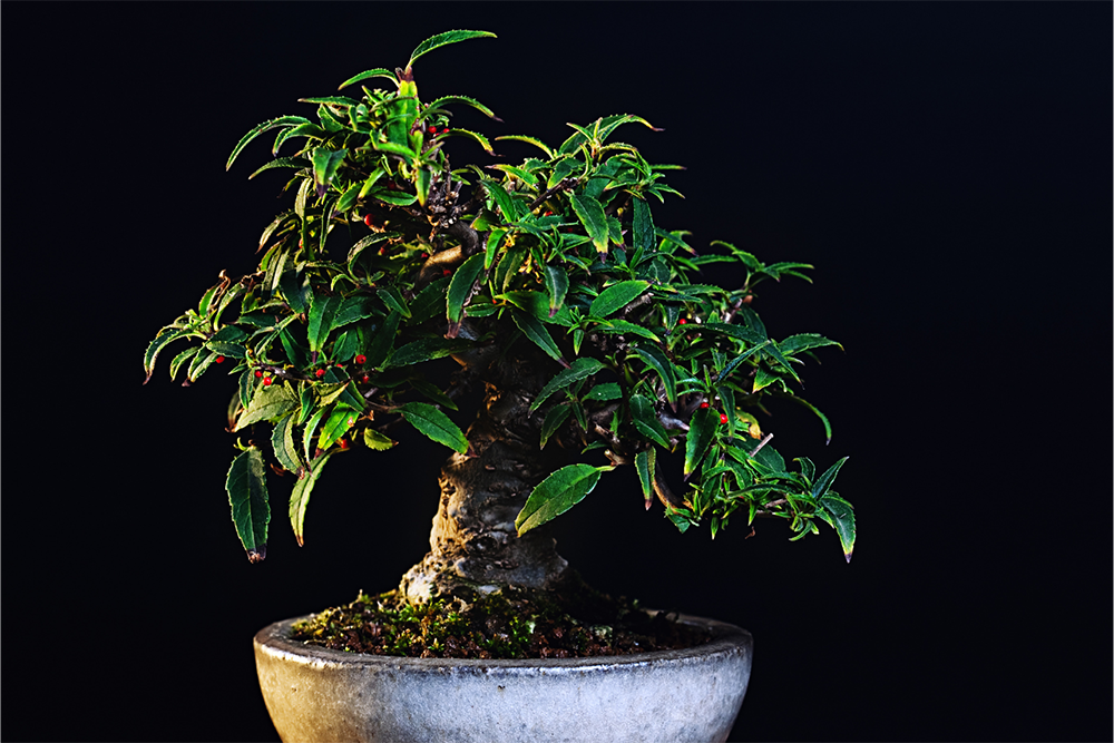 盆栽是日本的傳統藝術,在小盆中表達植物的自然之美。